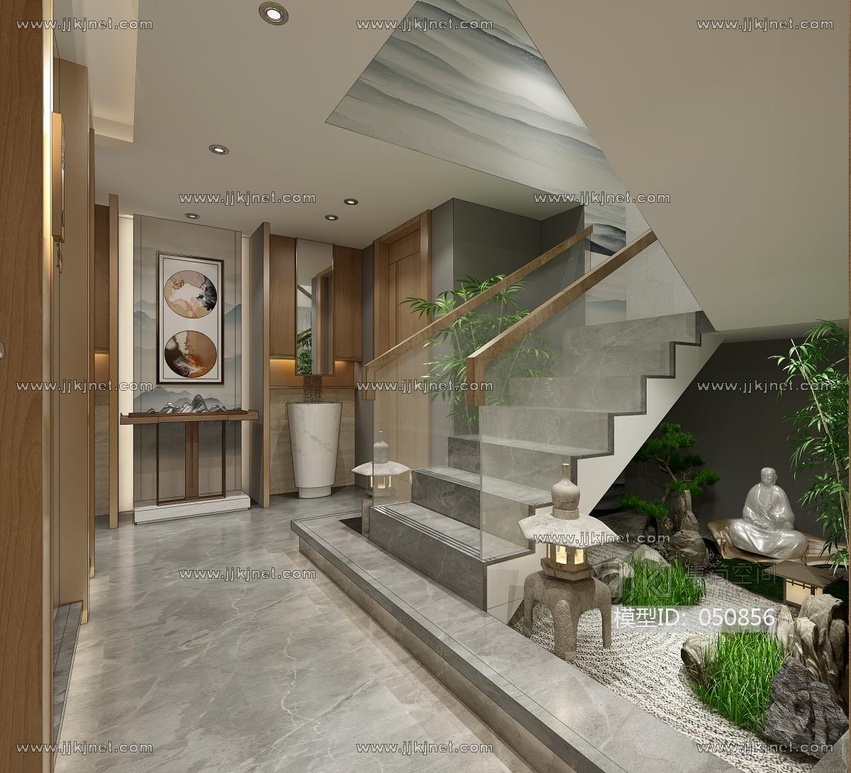 Z04-0624中式茶馆茶楼楼梯间日式枯山水景观 3d模型下载 [模型ID:50856]