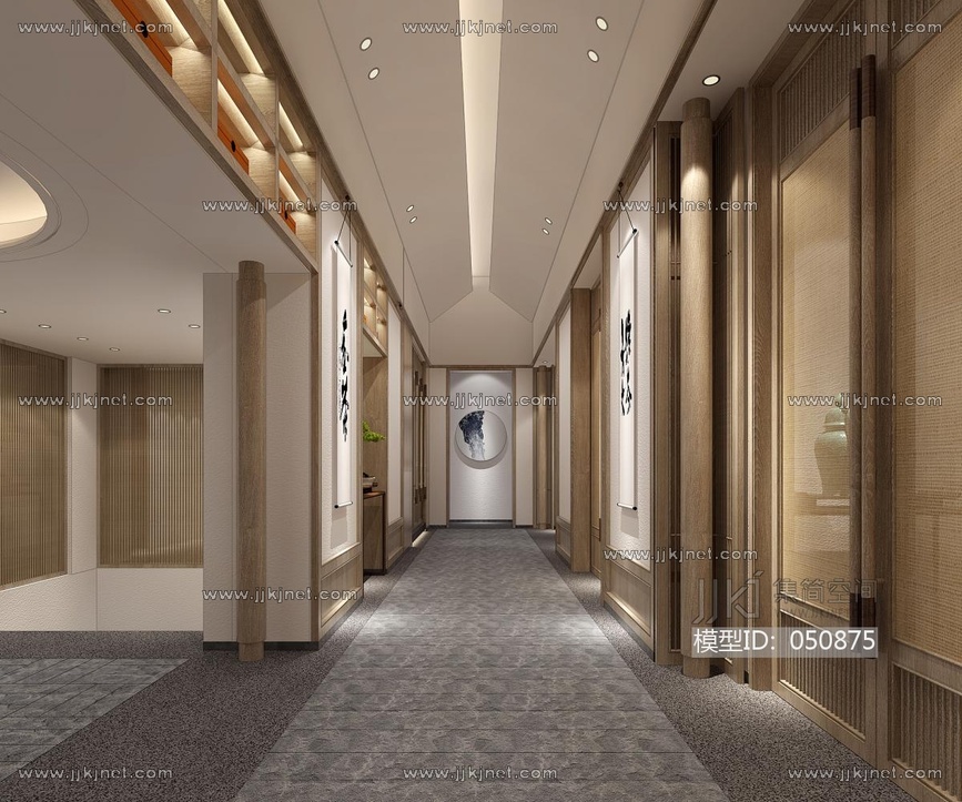 新中式KTV过道,走廊3d模型下载