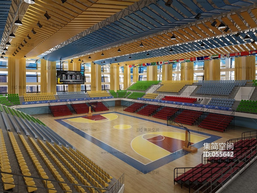 学校室内蓝球场 3d模型下载 [模型ID:55642]