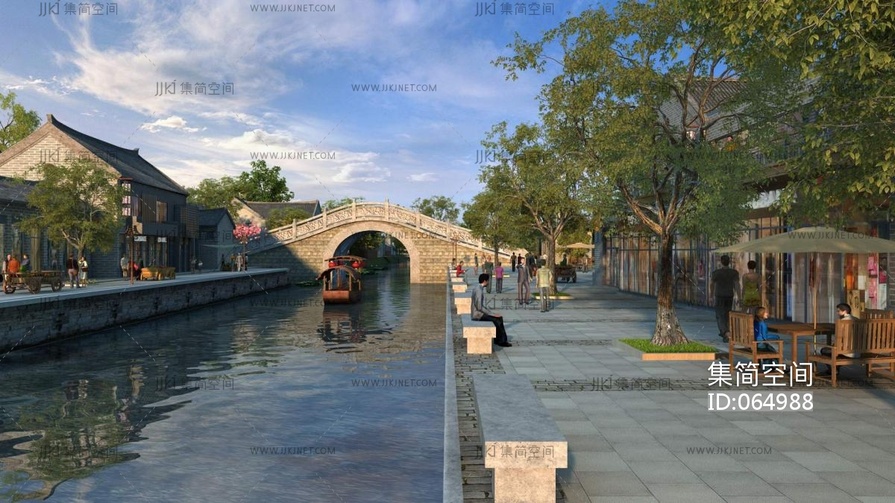 古建护城河石拱桥街景 3d模型下载 [模型ID:64988]