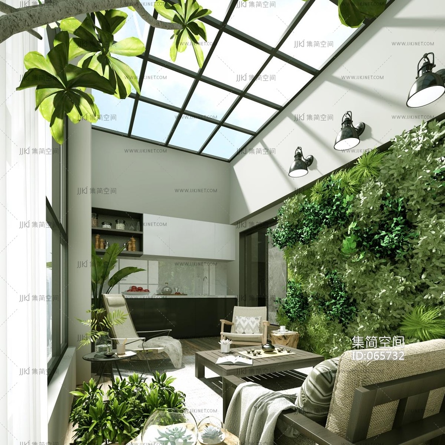 现代多肉植物藤蔓绿植墙室外阳台鸟笼3d模型下载