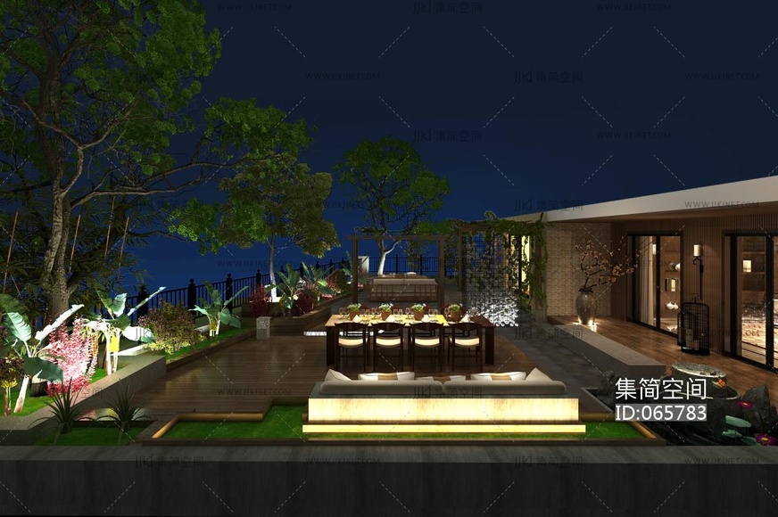 新中式景观庭院 3d模型下载 [模型ID:65783]