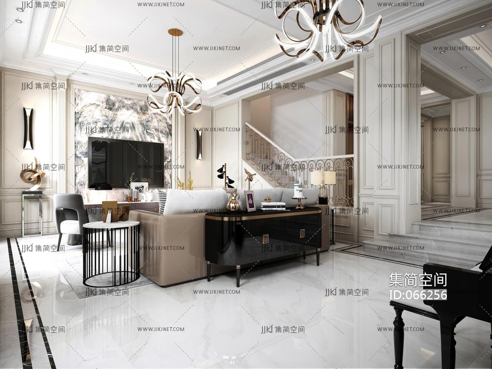 客餐厅现代客厅橱柜电视背景墙,奶油风休闲椅3d模型下载