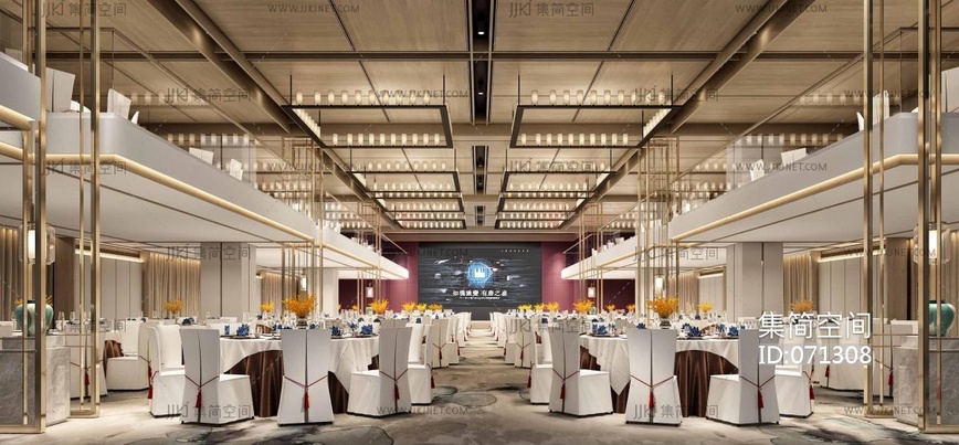 现代新中式酒店自助餐厅,餐台3d模型下载