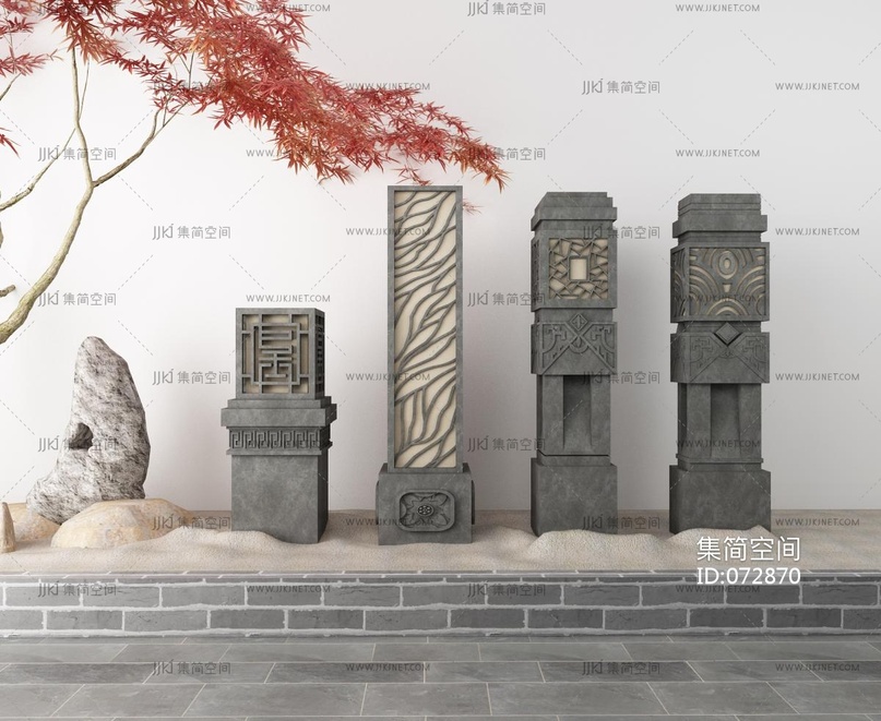 新中式石头草坪灯路灯庭院灯 3d模型下载 [模型ID:72870]