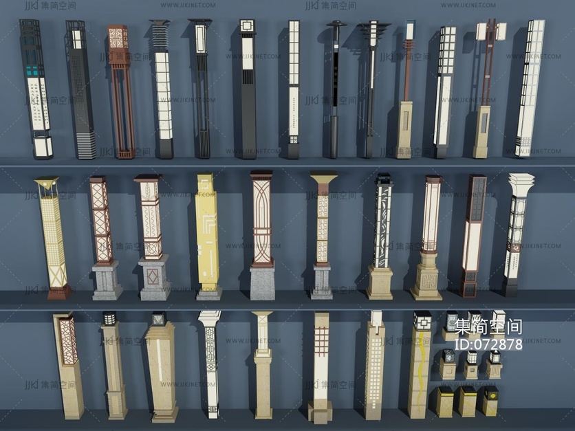 新中式铁艺草坪灯,落地灯景观灯3d模型下载