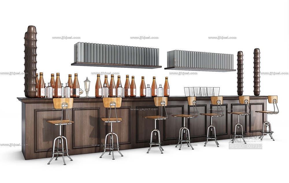 H05-0828美式柜台吧椅组合 3d模型下载 [模型ID:7312]