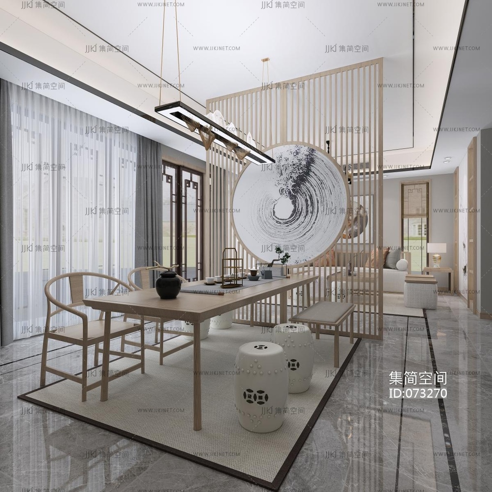 新中式客厅餐厅 3d模型下载 [模型ID:73270]