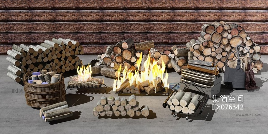 现代篝火,木头劈柴,柴火,柴火堆,,火堆 3d模型下载 [模型ID:76342]