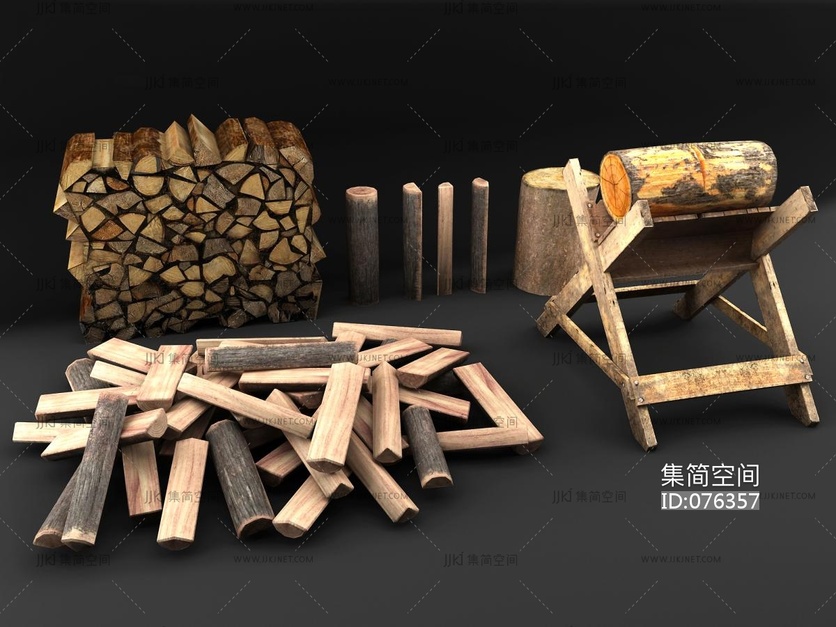 木头劈柴,柴火,柴火堆, 3d模型下载 [模型ID:76357]