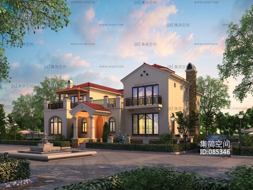 欧式美式独栋别墅外观,景观配镜 3d模型下载 [模型ID:85346]