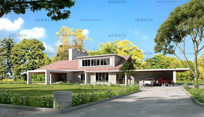乡村独栋别墅,景观树 3d模型下载 [模型ID:86230]