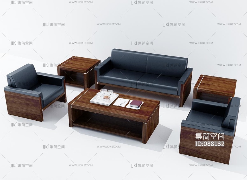 002皮革沙发办公沙发单人沙发茶几-063d模型下载