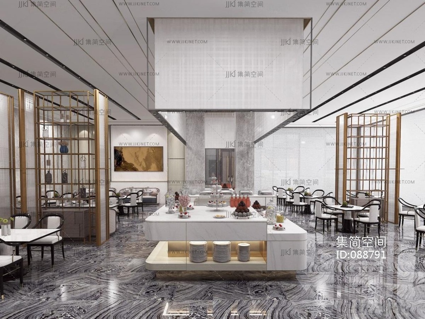 现代新中式酒店自助餐厅,餐台 3d模型下载 [模型ID:88791]