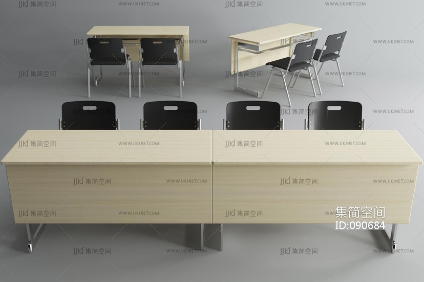 现代培训桌椅3d模型下载
