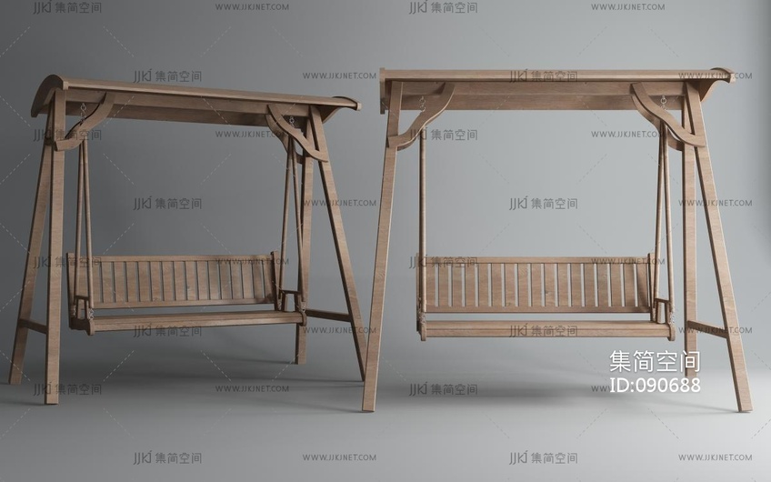 现代实木户外秋千 3d模型下载 [模型ID:90688]
