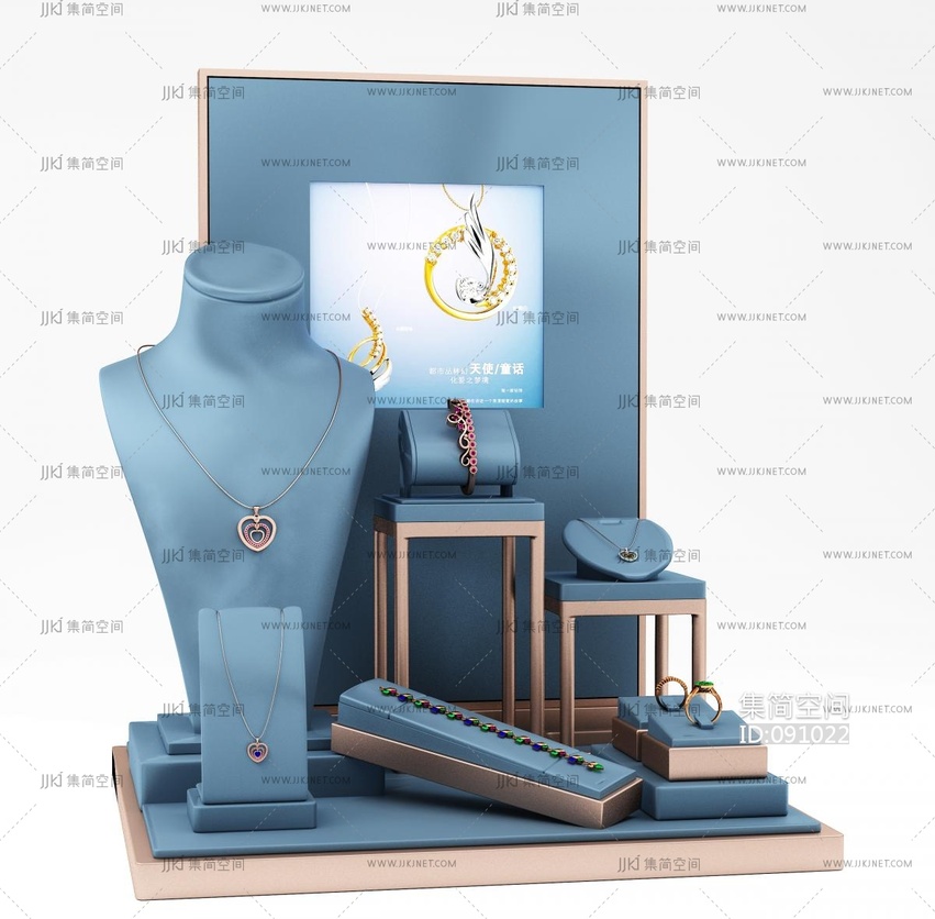 新中式手镯项链玉器珠宝,展示台展柜3d模型下载