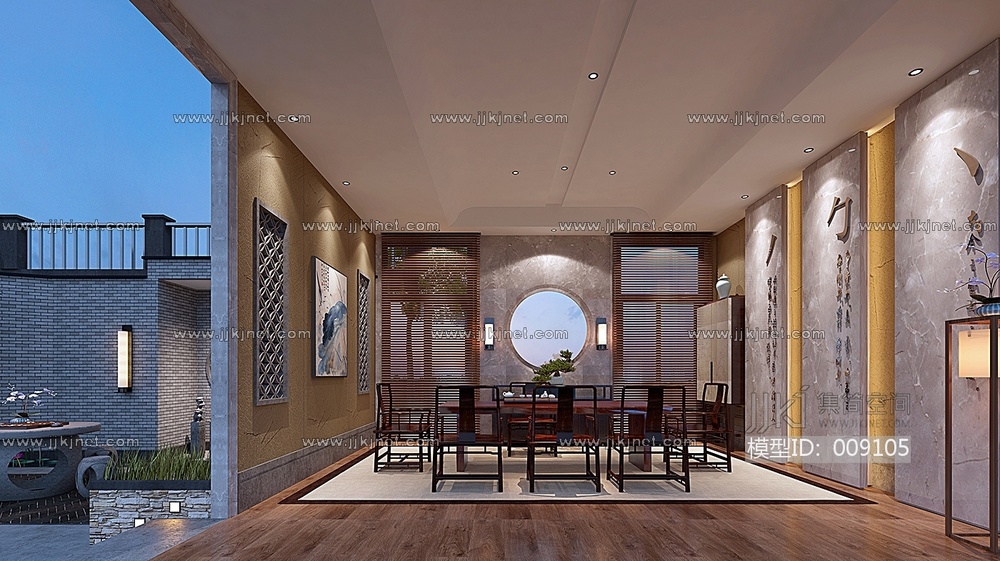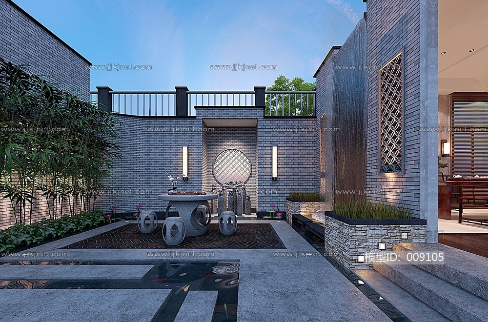新中式庭院3d模型下载