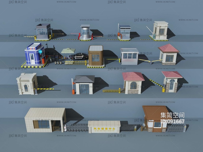 现代门卫保安室建筑外观,收费道闸 3d模型下载 [模型ID:91667]