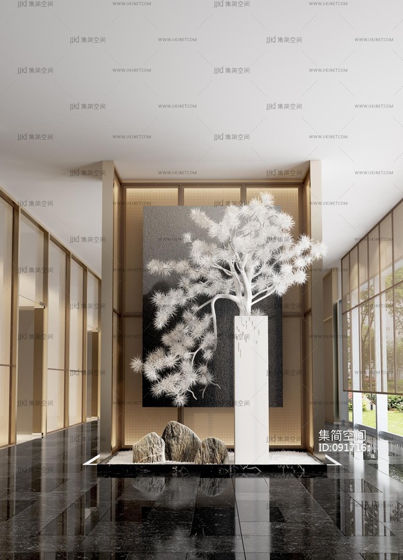 新中式玄关景观,走廊 3d模型下载 [模型ID:91716]
