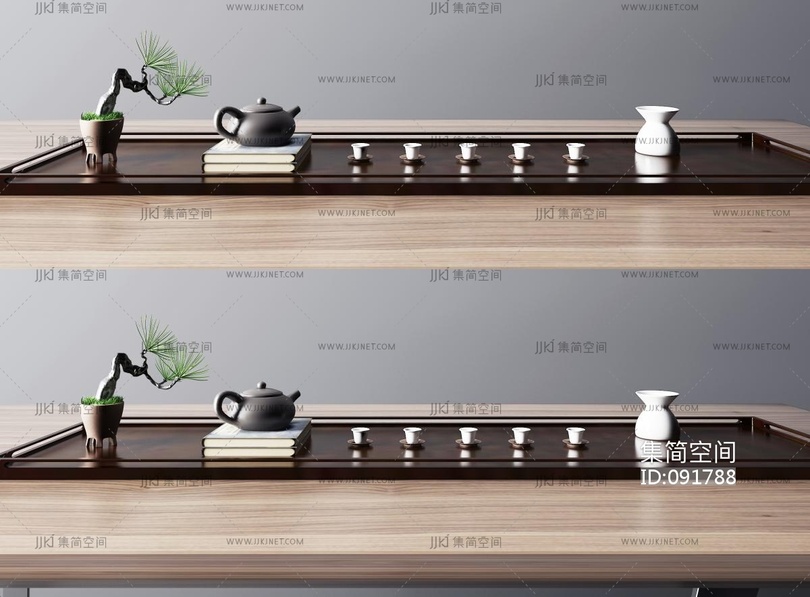 新中式茶具,茶盘, 3d模型下载 [模型ID:91788]