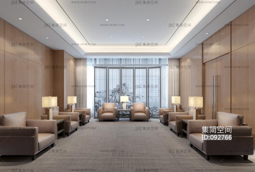 现代轻奢新中式接待室3d模型下载