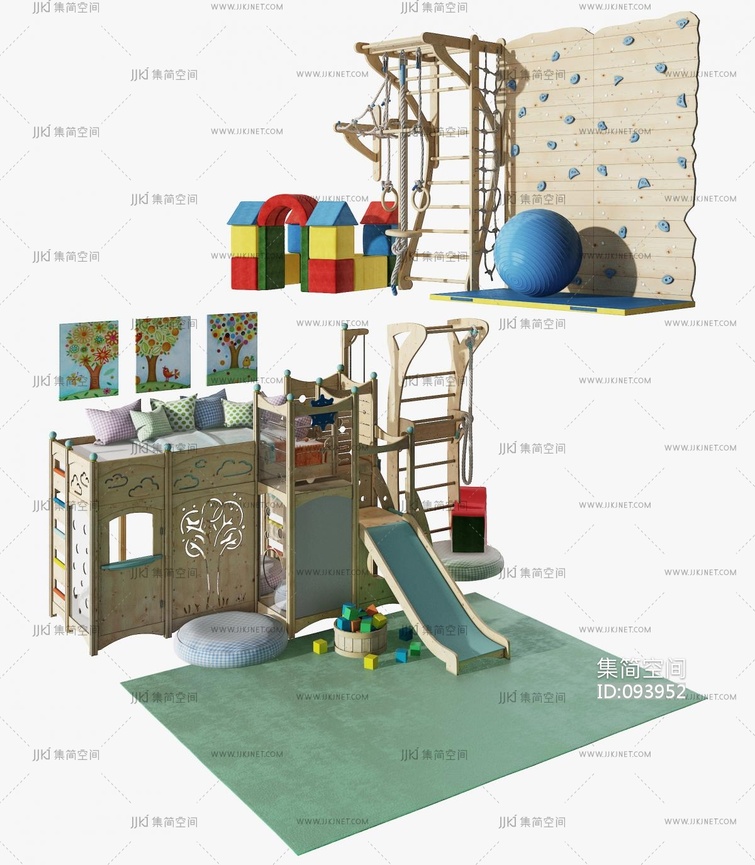 现代儿童攀岩滑梯娱乐设施 3d模型下载 [模型ID:93952]