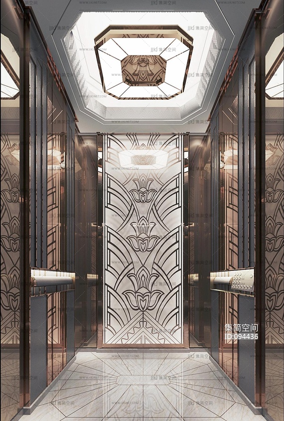 新中式轻奢电梯轿厢, 3d模型下载 [模型ID:94436]