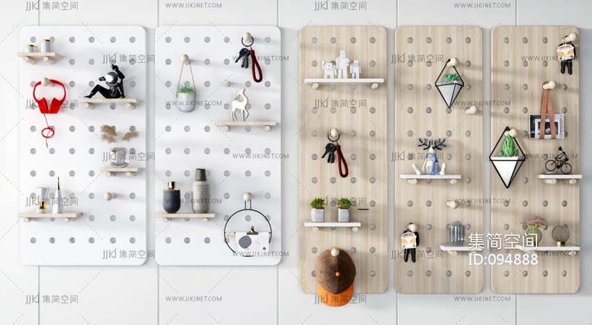 北欧洞洞板壁挂置物架吊柜 3d模型下载 [模型ID:94888]