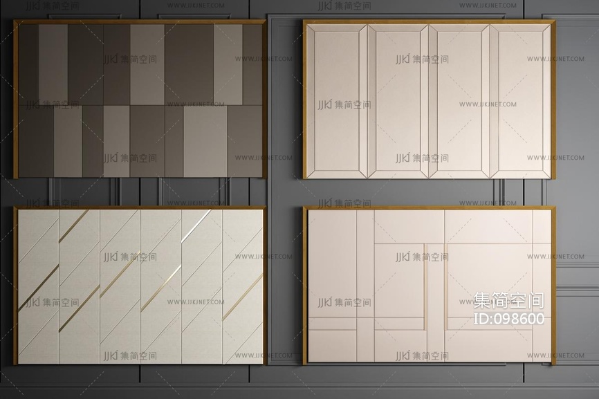 现代新中式皮革硬包软包床头背景 3d模型下载 [模型ID:98600]