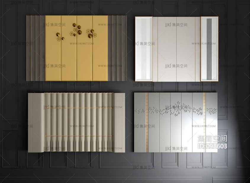 现代软包硬包背景墙组合 3d模型下载 [模型ID:98603]