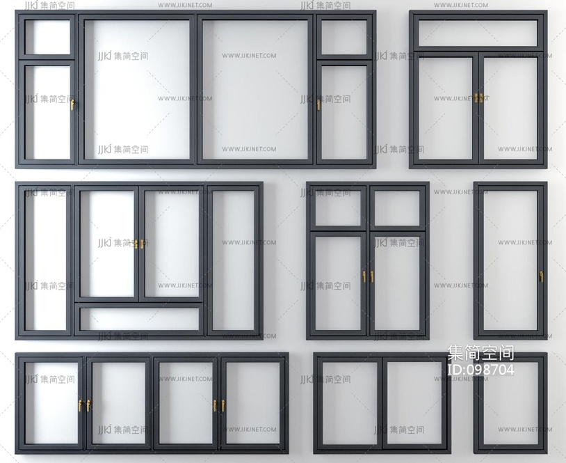 现代铝合金窗户,建筑窗 3d模型下载 [模型ID:98704]