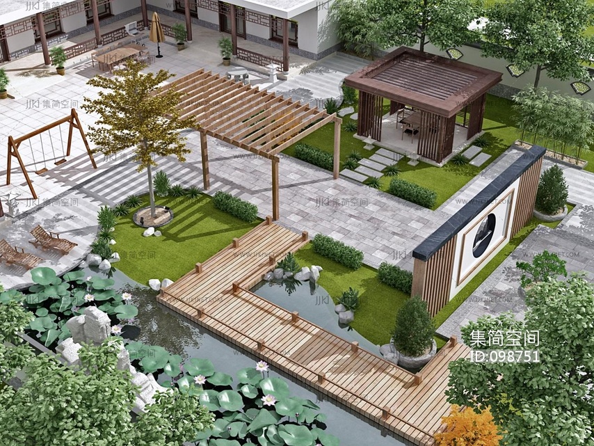 新中式别墅庭院 3d模型下载 [模型ID:98751]