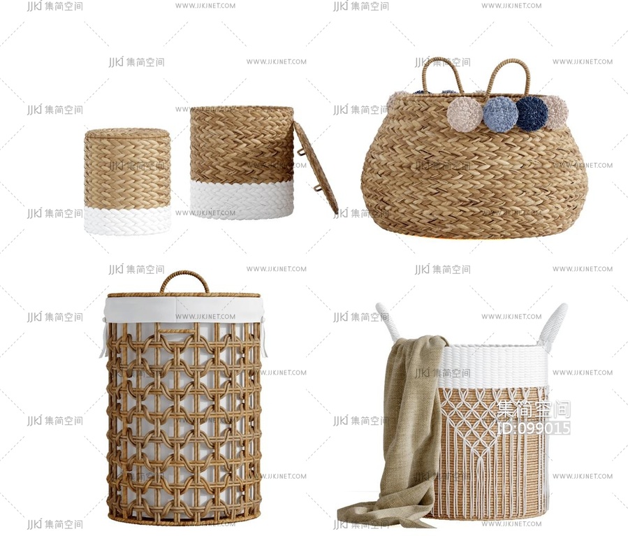 自然风藤编编织收纳筐收纳篓 3d模型下载 [模型ID:99015]