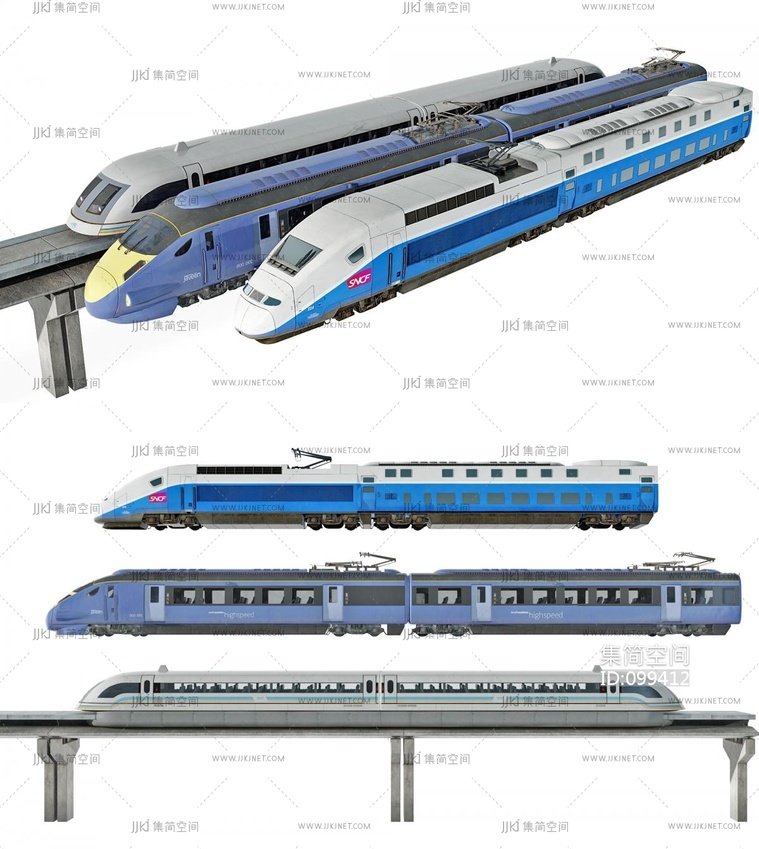 03高铁轻轨地铁高架桥轨道列车3d模型下载