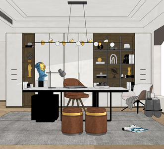 z14-0609现代书房,书桌椅,吊灯休闲椅-