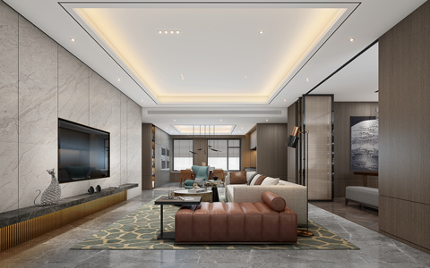 现代轻奢样板间客厅,沙发