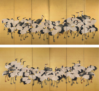 新中式仙鹤背景屏风画,壁纸壁布 (11)