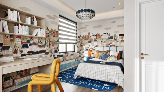 03现代简约男孩房,双人床,写字台