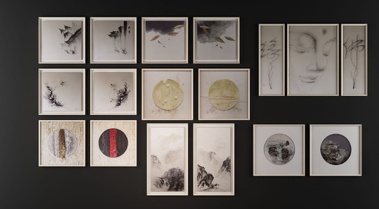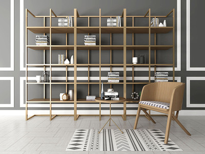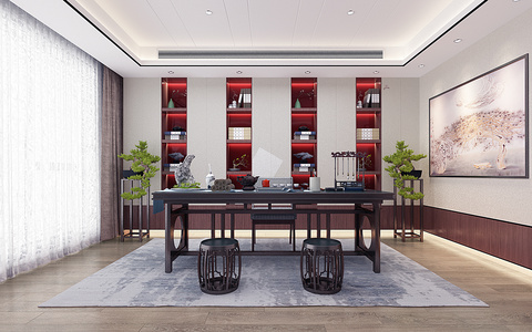 新中式书房,古典实木书桌椅,花架盆景摆台