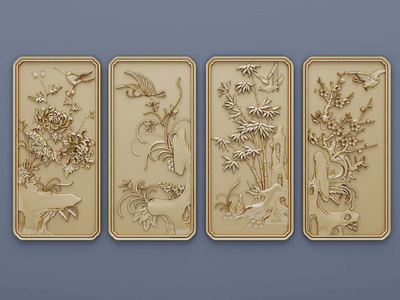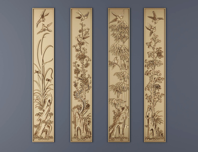 中式雕花,梅兰竹菊,花鸟植物图案,雕花