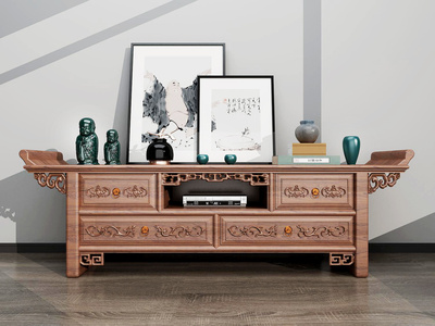 中式古典实木红木雕花电视柜,饰品,摆件,角花