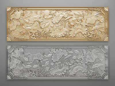 中式鲤鱼荷花纹理图案,雕花,浮雕,木雕,雕刻