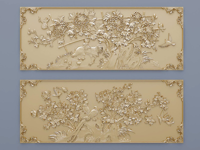 中式花鸟牡丹图案,雕花,浮雕,木雕,雕刻
