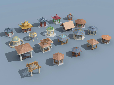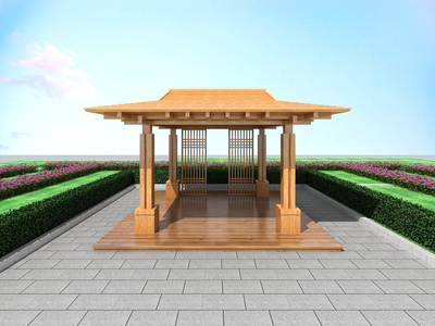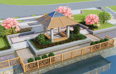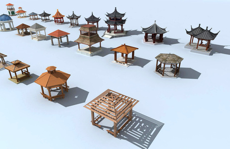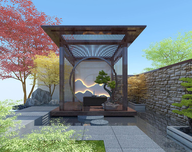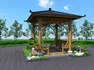 10中式景观凉亭,绿植,树,