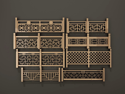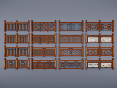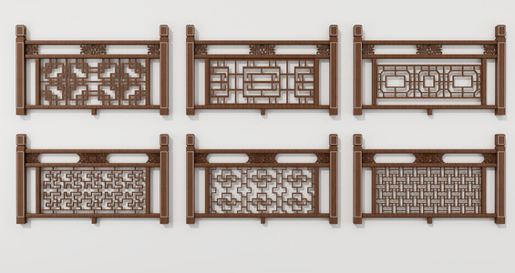 中式实木雕花栏杆,围栏,护栏,扶手,