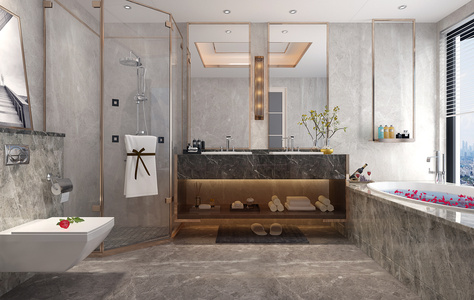 H27-0722现代新中式卫生间浴缸花瓣淋浴房壁挂马桶