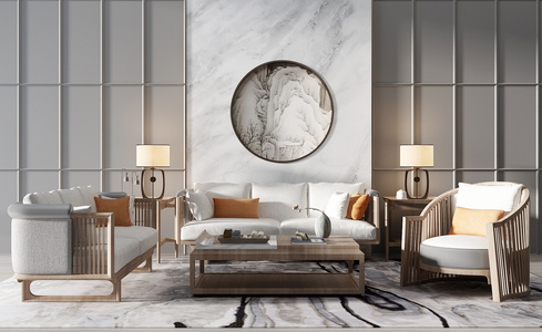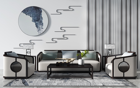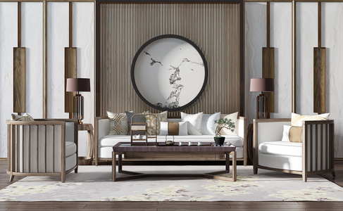 H12-0717新中式沙发茶几椅子圆形挂画装饰画台灯