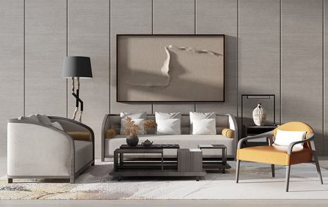 H14-0717现代新中式布艺沙发单人沙发花瓶落地灯花灯吊灯