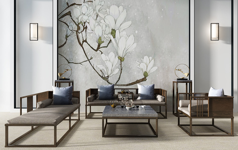 H04-0717新中式沙发茶几椅子树枝落地灯立体化